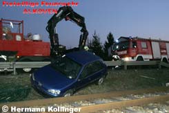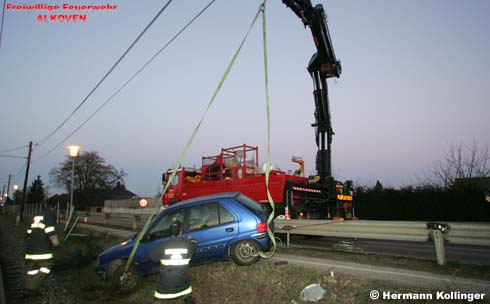 Auto angehoben, auf die Bundesstraße gehievt und am nur wenige Meter