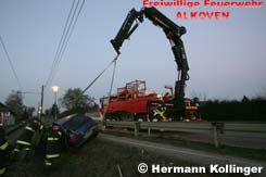 vorsichtiger Kranbetrieb erforderlich. Während der Pkw mit der Seilwinde des