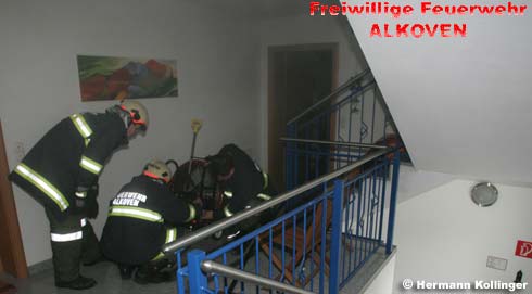 Hannes Doppler läutete und klopfte Sturm und weckte auf diese Weise das noch in der Wohnung schlafende Paar. Dieses konnte sich noch durch die bereits dicht verqualmte ins Stiegenhaus retten. Nachdem Doppler auch den Nachbarn auf die drohende Gefahr aufmerksam machte, ließ er über die Landeswarnzentrale in Linz die beiden Alkovener Feuerwehren (Alkoven, Polsing) alarmieren, welche um 11.33 Uhr über Alarmsirene und Personenrufempfänger verständigt wurden.. |